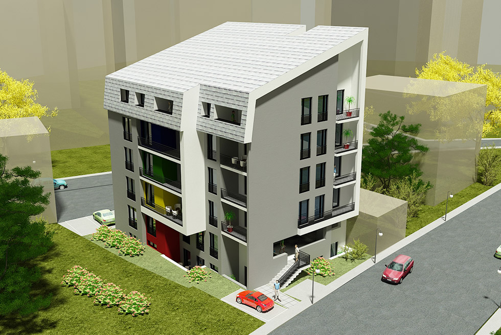Imobilul S+P+3+M in total 23 de locuinte: garsoniere, apartamente 2 camere si apartamente tip studio: