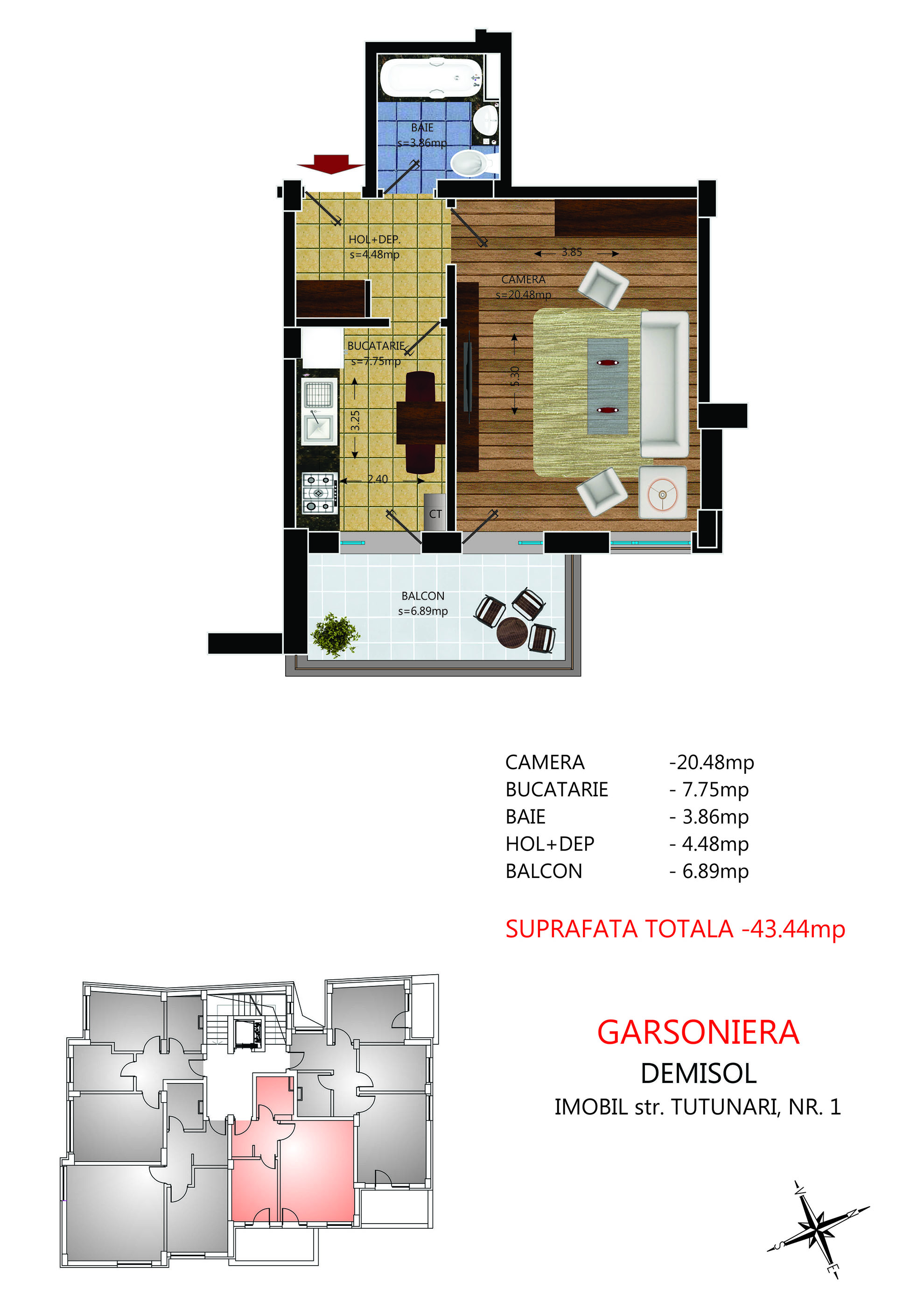 Garsoniera Demisol 43.44 mp