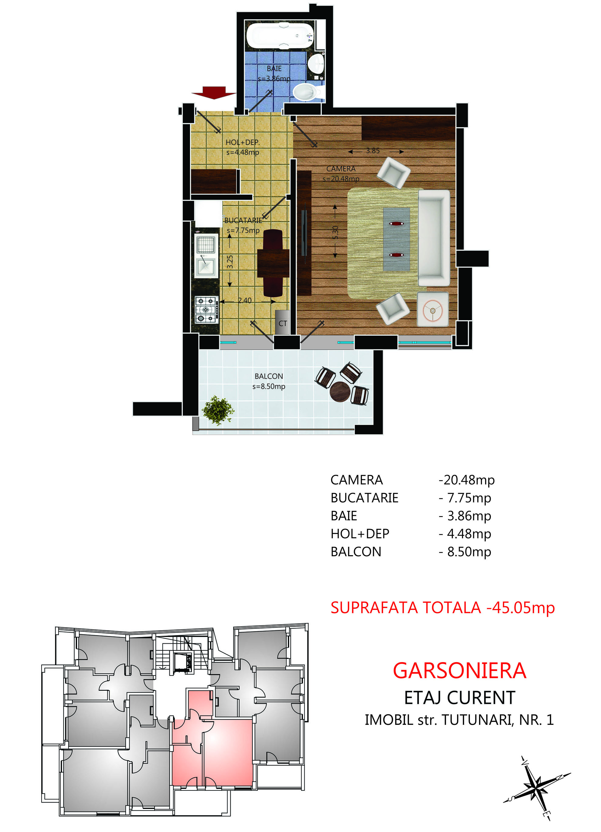 Garsoniera Etaj 45.05 mp